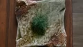 ・濃紺の北欧柄の布に、信楽焼の深鉢。