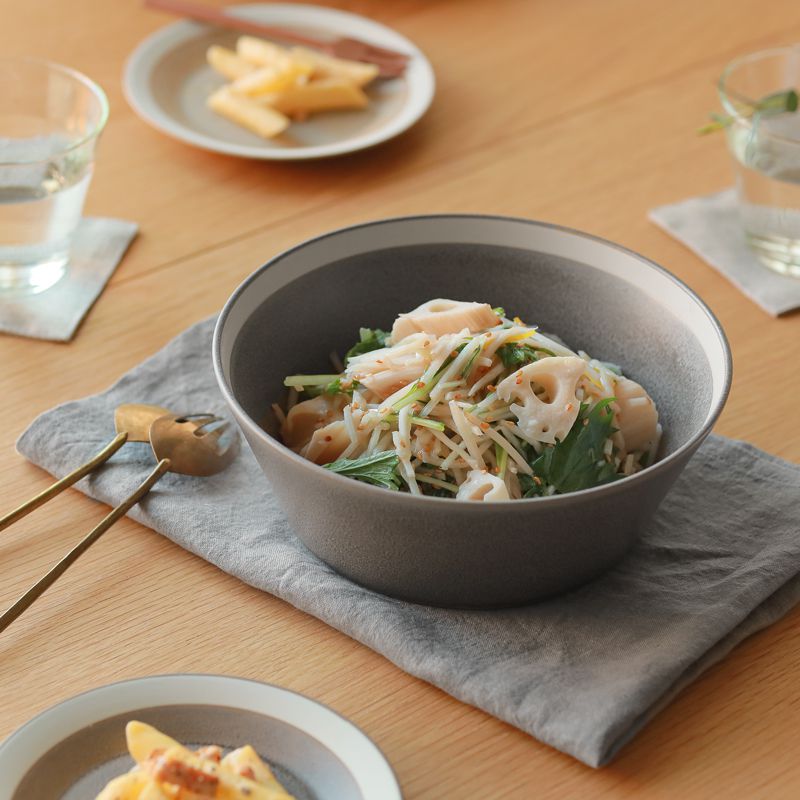 ・色のバリエーションは、モスグレー(Moss Gray)、サンドベージュ(Sand Beige)、インクブルー(Ink Blue)、フォググレー(Fog Gray)など、落ち着いたトーンで統一されており、マット釉と光沢釉を使い分けた質感の違いも楽しめます。