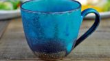 シャビーターコイズの益子焼マグカップで、特別なひとときを!