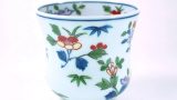九谷焼:赤絵梅書詰文汲出・九谷美陶園《汲出・8.0cm》