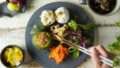 砂のプレートに藍や青磁を添えると、清涼感が生まれる。海を思わせる色合わせは、南欧から北欧まで共有される感覚で、魚料理や白いソースを軽やかに見せる。土地の色(砂)と水の色(青)という分かりやすい物語が、食卓に説得力を与える。