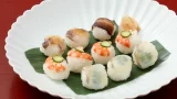 料理を盛ると、モダンな染付はさらに力を発揮する。