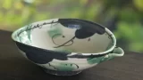 「今日はこれで食べてみてよ。」娘はそっとテーブルに小さめの蓋つき丼を置いた。口径18センチほどのその丼は、小ぶりながらも、どっしりとした存在感を放っていた。赤絵の模様が器全体に優しく広がり、染付の絵も描かれている。さらに、緑のアクセントが鮮やかに加わり、どこか懐かしくも華やかさを感じさせる。