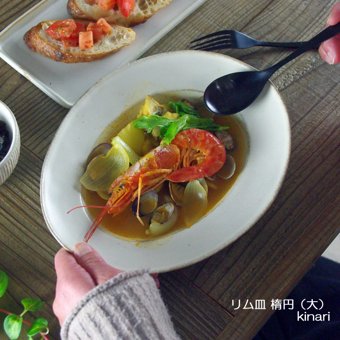 リム皿 楕円(大) kinari 益子焼 やさしい器シリーズ オーバル皿