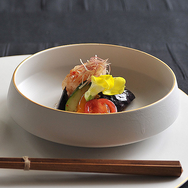 くくる、括るという行為は、包み、守る、中心を定めるという意味も内包し、料理を盛ること、食材を慈しむことと相性がよく、器が役割を越えて「場をつくる」存在になることを意図しています。