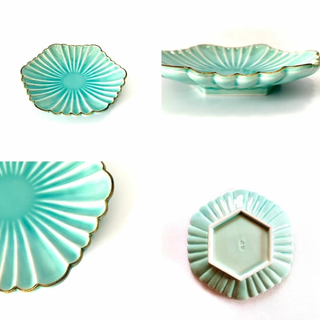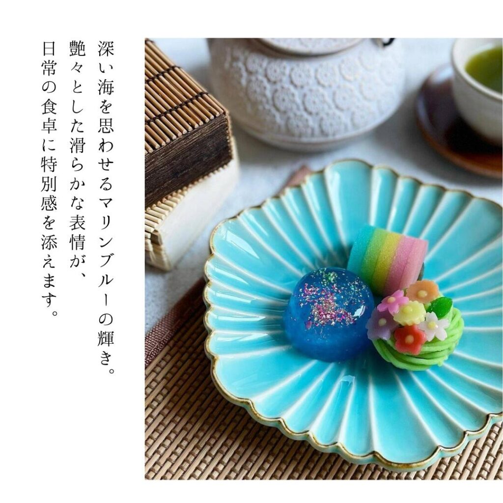 美濃焼 菊六角皿 マリンブルー 淵サビ
